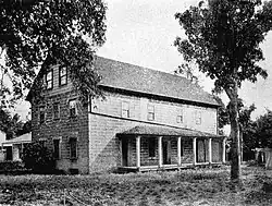 By 1920, the House was restored. The woodwork, which had been riddled with borers, was replaced with new, the roof covered with asbestos shingles, and green shutters placed at the windows. The inside remained the same, with steep stairways, small-paned windows, a great attic, and low-ceiled kitchen.[5] The services of Mr. Eskew, who did the restorative work on the Chamberlain House, were also secured for the restoration of the Adobe Schoolhouse (1920–21).[6]