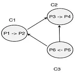 Consider the n processes P1, P2, P3, P4, P5,, ... ,Pn which are performed in a single system (controller). P1 is locally dependent on Pn, if P1 depends on P2, P2 on P3, so on and Pn−1 on Pn. That is, if , then is locally dependent on . If P1 is said to be locally dependent to itself if it is locally dependent on Pn and Pn depends on P1: i.e. if , then is locally dependent on itself.