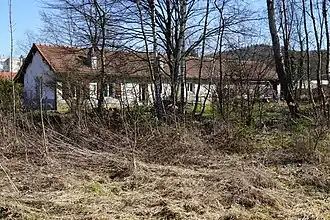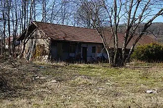 The sorting-washing-screening workshops were built in 1898, replacing the small workshops from the Magny shaft. A coking plant was built between 1900 and 1920 to replace the furnaces in the Saint-Joseph shaft. It closed in 1933, while the rest of the installations remained in operation until the mines closed in 1958. The power station was operated by the Ronchamp coal mines from its construction between 1906 and 1907 until its nationalization in 1946, when it became the property of Électricité de France until its closure in 1958. The plant was expanded twice between 1910 and 1924, to reach a capacity of 30 MW. Annual production varied between 5 and 37 GWh until 1950.[16] A few ruins of these installations (including one hopper) remained at the beginning of the 21st century,[17] whereas the second hopper was dynamited by the army in the 1960s and left in place.[18]