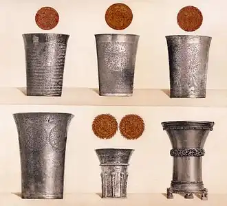 ![]() Silver drinking cups from the 15th and 17th centuries | |