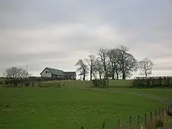 High Chapelton is first marked on the 1829 and the 1858 maps, together with a limekiln and a ford over the Annick. An old track is seen running from the farm to the field containing the 'grain barn' near Laigh Castleton; ploughing in this field has not turned up any stones, building or otherwise therefore suggesting a building constructed from wood. James Wilson and his spouse Mary Steven farmed at High Chapeltoun in 1760, when she died, aged 56. They were buried at the Laigh Kirk in Stewarton. Mary Reid of High Chapelton and Stacklawhill was born here on 20 January 1827, daughter of Thomas Reid of Stacklawhill. His wife was Mary Wilson of High Chapelton. The memorial stone is in the Stewarton cemetery. The rental value in around 1820 was £137.[20]
