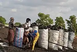 Charcoal trade has a detrimental impact on the environment in Somalia. Notably, charcoal production generates substantial deforestation in the regions of Jubaland, Bay, and Lower Shabelle.[11] The United Nations' Food and Agriculture Organization (FAO) estimates that during the years 2011 to 2017 approximately 8 million acacia trees were felled to produce 16 million bags of charcoal. This means that on average, one tree was cut down every 30 seconds during this seven-year period.[12][13] If such a rate of deforestation continues, it would result in the complete depletion of trees in Somalia by the year 2060.[7][8] Deforestation in turn leaves the country vulnerable to droughts, famines, and floodings and increases the risks for conflicts over resources and severe humanitarian crises.[14]