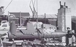 Later in the war, due to problems encountered with this method, Chariots were instead secured to the deck of the submarine using chocks.