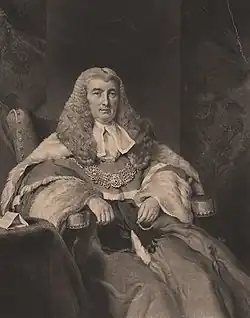 In 1830, he introduced several bills to Parliament following reports on the state of the Ecclesiastical Courts, common law courts and law of real property; all were passed, except the ecclesiastical bills, as Parliament ran out of time to hear them. They were heard during the next Parliamentary session in 1831, and both passed; they "by no means established for him the reputation of a skilful legislator... the judges have found it infinitely difficult to put a reasonable construction upon them".[24] The Reform Act 1832 led to his departure from the Lords, and is considered to have greatly shortened his life; he fought strongly for the city corporations, which he claimed the bill treated "with absolute contempt", but would be defeated. Having threatened that, should it pass, "Never, never my Lords, shall I enter the doors of this House", he was true to his word, and never returned to politics,[2] although from 8 August to 3 September 1827 he was interim Chancellor of the Exchequer, following the convention that, when vacant, the position should be held by the Lord Chief Justice.[10]