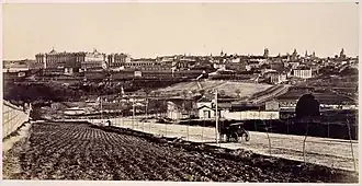Although known mainly for his collections of photographs of landscapes, monuments and public works, he was commissioned to carry out a portrait of Queen Victoria[2] at Windsor Castle (her notes in her Journal for 14 November 1861 state she was "dressed in evening dress, with diadem & jewels" and was "photographed for the Queen of Spain by Mr Clifford. He brought me one of hers, taken by him". It was possibly one of the last portraits taken of the queen wearing a colour[3]), and was also named Court Photographer to the Queen of Spain, accompanying her on the royal tour of Andalucia in 1862.