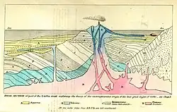 Lyell's work on volcanoes focused largely on Vesuvius and Etna, both of which he had earlier studied. His conclusions supported gradual building of volcanoes, so-called "backed up-building",[6] as opposed to the upheaval argument supported by other geologists.