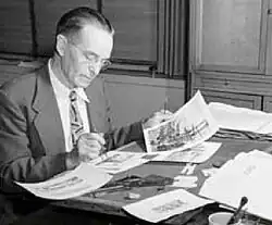 Charles Ransom Chickering (October 7, 1891 – April 29, 1970) was best known as the freelance artist who designed some 77 postage stamps for the U.S. Post Office while working at the Bureau of Engraving and Printing in Washington, DC.[2] His career as a professional artist began while working as an illustrator for the U.S. Army recording and drawing medical illustrations of the wounded and dead during the First World War.[a] He continued the practice in civilian life and became a noted artist-illustrator who worked for a number of prominent magazines, including The Saturday Evening Post, which were very popular during the pre-television era of the 1920s to 1940s. After the Second World War Chickering began working for the U.S. Post office designing U.S. Postage stamps, some of which became famous. Later in life he became a designer and illustrator for first day cover cachets that were also popular among stamp and postal history collectors.[3]