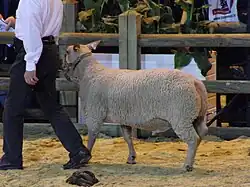 The Charollais is a breed of domestic sheep originating in east central France, in the same region in which Charolais cattle originated, Charolles and Saône-et-Loire.[1] It is known for ease of lambing and is used as a terminal sire to increase muscling and growth rate of the lambs.[2] It has been exported internationally, and is commonly used in the United Kingdom as a sire to produce market lambs from pure-bred ewes and mules.[3]