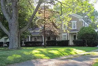 Chase Cobblestone Farmhouse, also known as the Chase-Flack Farmhouse, is a historic home located at the Village of Hilton in Monroe County, New York, United States. It is a vernacular Greek Revival style cobblestone farmhouse built about 1836. It is constructed of rather small sized field cobbles and is one of ten surviving cobblestone buildings in the Town of Parma.[2]