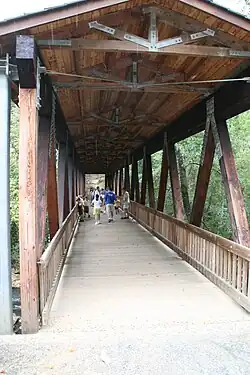 From the Vickery Creek Unit, pedestrians can use sidewalks and spur trails for convenient access to Chattahoochee River Park (a Roswell Recreation and Parks/Fulton County park), Riverside Park, Don White Memorial Park, Willeo Creek Park on the Cobb County line, Waller Park on Hog Wallow Creek, and the Chattahoochee Nature Center. Roswell Mill can be accessed via a spur trail and covered bridge that crosses the creek at the site of the Roswell Mill Machine Shop, which was built in 1853 and is the only original building left standing of the 1839 Roswell Manufacturing Company. The Roswell Mill building currently left standing was built in 1882 and is now used as an office complex.