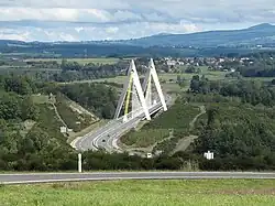 The Chavanon Viaduct is a suspension bridge located in the Chavanon Valley in France connecting the towns of Merlines and Messeix. Opened for traffic in 2000, it has a main span of 300 metres.