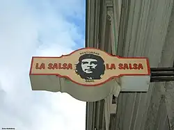 - The capital city of North Macedonia, Skopje features a restaurant called Casa Cubana[30] that has Latin American-theme with food and cocktail drinks (mojito, Cuba libre etc.)The walls are decorated with the Cuban flag and photos of Che Guevara, Fidel Castro and Camilo Cienfuegos and also there are hosted parties with Latin music.