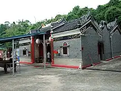Situated on the banks of the Ho Chung River,[11] and half a mile from Ho Chung Village in Sai Kung District,[1] the temple is one of the oldest in Hong Kong and worship General Che, his son and his grandson. Initially built in the mid-16th century, the temple predates its popular counterpart near Tai Wai in Sha Tin District, which is said to worship the grandson of General Che.[3] The present temple structure probably dates largely from 1878, while the temple furniture probably dates from the Xianfeng era (1850–1861).[1]