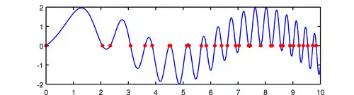 This variable can now be used to perform further computations, for example, computing and plotting roots of a function: