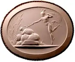 Hermes transforms Chelone into a tortoise, plaster cast of a Poniatowski gem.