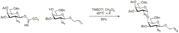 Trichloroacetimidates were first introduced and explored by Schmidt in 1980[22][23] and since then have become very popular for glycoside synthesis. The use of trichloroacetimidates provides many advantages including ease of formation, reactivity and stereochemical outcome.[13]