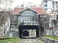 The Auteuil line's 1854 'Batignolles' station was destroyed during the renovation and enlargement of the Batignolles tunnels to the Gare St. Lazare from 1911, and the temporary station that replaced it took the name 'Pont Cardinet' from 1919; that same station would become the line's terminus in 1922 when, after a rail-traffic interrupting collapse of those same tunnels in 1921, it was moved there when the station's definite construction was complete.[76] From then the only connection to the Gare St-Lazare from the ceinture was through the Boulainvilliers antenna (electrified since 1919), but this service, little used by passengers, ended from 1924.[77] The Auteuil line was joined to the Ceinture only through its Auteuil terminus from then; the two lines would become further distinct when the Auteuil line, with the Boulanvilliers antenna, was electrified one year later. Meanwhile, the Syndicate Petite Ceinture's passenger traffic was losing about one million passengers every two years, and had dropped below 8 million by 1926.[77]