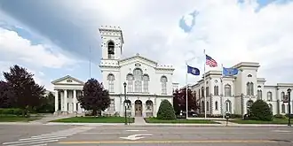 The Chemung County Courthouse Complex consists of four buildings built between 1836 and 1899. The oldest building, built in 1836, is the District Attorney's and Treasurer's Building. The centerpiece, the courthouse itself, was designed by Horatio Nelson White, and built in 1861–62. These were followed by the County Clerk's Office in 1875 and the addition of the Court House Annex in 1895. The complex was added to the National Register of Historic Places in 1971.[2]