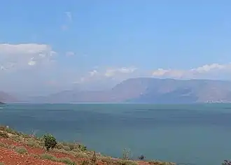 Chenghai Lake (Chinese: 程海; pinyin: Chénghaǐ) is a mesotrophic[1] plateau lake in Yunnan Province, China. The lake has a total area of about 77.22 square kilometres (29.81 sq mi). The average depth is 25.7 metres (84 ft), with an elevation of 1,503 metres (4,931 ft). the water storage capacity is about 19.87×108m3 (i.e about 2 billion m³ or 2 km³).[2] Chenghai Lake is one of only three lakes in the world where Spirulina is found naturally.