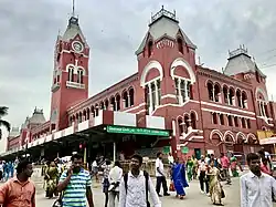 In 1907, Madras Central was made the Madras Railway Company's main station.[15] The station gained prominence after the beach line was extended further south in the same year, and Royapuram was no longer a terminus for Madras.[16] All trains were then terminated at Madras Central instead. The Madras and Southern Mahratta Railway Company was formed in 1908 and took over the Central station from the Madras Railway Company.[15] The station's position was further strengthened after the construction of the headquarters of the Madras and Southern Mahratta Railway (erstwhile Madras Railway and now known as the Southern Railway) adjacent to it in 1922.[17]