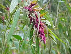 Chenopodium formosanum is also known as red quinoa.[4] Note that the name "red goosefoot" is also used for the related species Oxybasis rubra. It is also known as "rainbow rice" due to its stripes.[5]