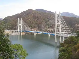 Cheongpung Bridge (Korean: 청풍대교; RR: Cheongpungdaegyo) is a cable-stayed bridge[1] which crosses the lake formed by Chungju Dam[2] (part of the Namhan River system, a tributary of the Han River) in North Chungcheong Province, South Korea on Route 82 in that region.