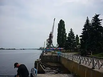 Until 1961, there was a river pier, later it was transformed into a river port.[5] The goods that passed through it were intended primarily for the construction of the city and region (early AD),[6] so the turnover was small. The situation has changed since 1986, when Cherkasy urea went to Vietnam and India through the port. The port also began transshipment of lumber to Turkey, Cherkasy peat - to France. In the 1990s, sugar cane from Brazil was delivered by barge through the port to the Cherkasy Sugar Refinery, which was then processed into sugar.