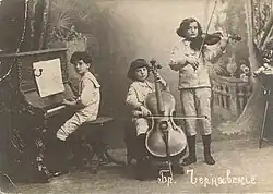 The Cherniavsky Trio was a Canadian musical trio of three brothers, Mischel Cherniavsky (cello), Leo Cherniavsky (violin), and Jan Cherniavsky (piano), sons of Jewish musician scholar and conductor Abraham Cherniavsky from Ukraine.[1] They were part of a family of nine musically gifted children, five brothers and four sisters.[2] Jan and Leo were born in Odesa, while Michel was born in Uman. They were naturalized in Canada on May 1, 1922.[3]