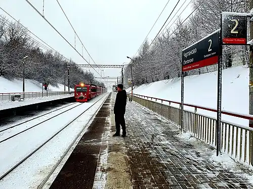 ![]() Chertanovo Rail Station in January 2020, with an Aeroexpress train to Domodedovo Airport passing by | |||||||||||