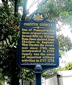 {{cite book}}: CS1 maint: location missing publisher (link) - ^ Futhey, John; Cope, Gilbert (1881). History of Chester County, Pennsylvania, with genealogical and biographical sketches. Philadelphia: L. H. Everts.