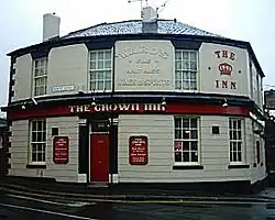 The first building on Chesterfield Road (although bearing an Albert Road house number) is the Crown Inn.