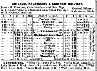 - ^ "N.Y.C. BUYS WESTERN LINE.; Chicago, Kalamazoo & Saginaw Is Obtained for About $1,000,000". The New York Times. December 30, 1906. Retrieved 2007-12-28.