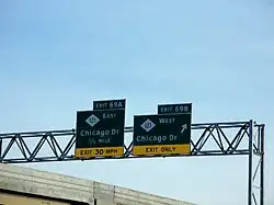 Chicago Drive, largely signed as M-121, is a combination state trunkline highway and municipal street running from 8th Street in Holland to the intersection of Cesar E Chavez (formerly known as Grandville) and Clyde Park avenues at the border of Grand Rapids and Wyoming, approximately 23.5 miles (37.8 km) in length. Running eastward, Chicago Drive picks up the Business Loop I-196 designation east of US 31. The highway has the typical mix of industry and commercial properties for the area. At 112th Avenue, it turns northeasterly to run through Zeeland. The roadway changes names when it turns due east again, where it is named Main Avenue and Main Place, comprising the only section of the route not designated Chicago Drive.[3]
