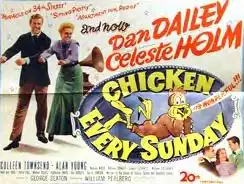 Chicken Every Sunday is a 1949 American comedy film directed by George Seaton. The screenplay by Seaton and Valentine Davies is based on the 1944 play of the same title by Julius J. Epstein and Philip G. Epstein, which was based on the memoir by Rosemary Taylor.[1]