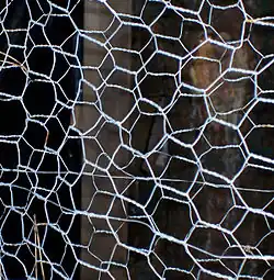In chemistry, the term chicken wire is used in different contexts. Most of them relate to the similarity of the regular hexagonal (honeycomb-like) patterns found in certain chemical compounds to the mesh structure commonly seen in real chicken wire.