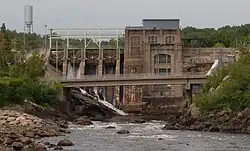 The Chicoutimi River is a watercourse of eastern Quebec, Canada. A tributary of the Saguenay River, which it meets in the city of Saguenay, it is the 26.2-kilometre-long (16.3 mi) main outlet of Kenogami Lake, which rises from a watershed of 3,390 square kilometres (1,310 sq mi) in the Laurentides Wildlife Reserve. Entirely located in the Chicoutimi borough of Saguenay, it is the most urbanized and dammed river in Saguenay–Lac-Saint-Jean.[1]