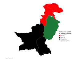 The parliamentary system in Pakistan follows the Westminster system.[2] Hence the ministers of the provinces are elected by the members of the legislature, and the majority party is invited to elect a leader, whose tenure lasts for five years. The people do not elect the head of the government, rather they elect their representatives only. In turn their representatives select the head of the government. The head of the government, once elected, enjoys almost exclusive executive powers.