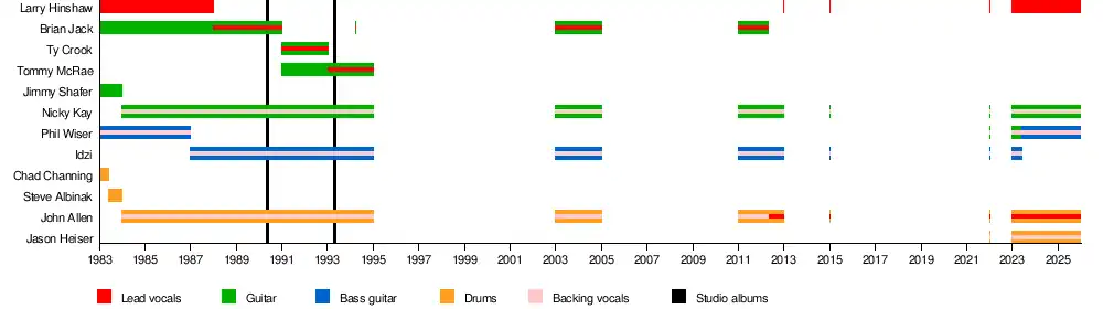- Nicky Kay – lead and rhythm guitar, backing vocals (1984–1995, 2003–2005, 2011–2012, 2013, 2015, 2022, 2023-present)