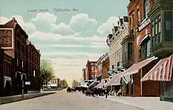 The railroad gave an impetus for town improvements. Soon two and three-story brick business buildings were constructed in place of the former frame structures. From 1865 to 1870, the city improved rapidly, then a lull lasted until 1875, when the erection of the beautiful three-story, $36,000 school building was started, now known as "Middle School." From that time on Chillicothe made a slow, steady growth up to 1886, when the Chicago, Milwaukee & St. Paul Railroad was built through here. That year also saw the introduction of the "Water Works" and electric lights. The city continued to modernize in the early 20th century.[7]