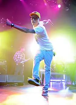 A month prior to the album's release, MTV aired an inaugural special entitled MTV Icon: Janet Jackson, declaring Jackson the network's first musical icon while celebrating her career and influence in pop culture.[42] Jackson was honored "in recognition of her place as one of the most influential and beloved tastemakers in contemporary pop... The show will eloquently demonstrate the impact that Janet has had, not only on her worldwide audience, but also on a generation of performers who will pay tribute by covering her songs."[43] Jackson stated, "When I heard that MTV wanted to honor me with the show "Icon," I was speechless. I really was. It is an awesome thing—I feel young. There's still so much more that I want to do, need to do, for myself in this business. And I was just so surprised. But a wonderful surprise."[44] Numerous artists paid tribute to Jackson and commemorated her success, including Britney Spears, Jessica Simpson, Jennifer Lopez, Christina Aguilera, Aaliyah, Tommy Lee, Michael Jackson, and producers Jimmy Jam and Terry Lewis. It featured performances by NSYNC, Pink, Buckcherry, Usher, Outkast, Mýa, and Destiny's Child. Jackson performed "All for You" and "You Ain't Right" at the finale.[45] The event was the highest rated television show of the night, ahead of all broadcast and cable programs among the youth demographic.[46] Promotional ads for the special depicted Jackson's music, videos, and sexuality shocking conservative audiences and families, using the tagline "The world wasn't always ready for Janet. We are."[47][48][49]