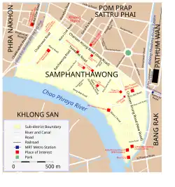 - ^ a b Sirisrisak, Tiamsoon (2015). "The Urban Development and Heritage Contestation of Bangkok's Chinatown". In van der Veer, Peter (ed.). Handbook of Religion and the Asian City: Aspiration and Urbanization in the Twenty-First Century. Univ of California Press. pp. 168–185. ISBN 9780520281226.