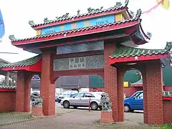 As more Chinese migrants moved to the city in the 1970s and 1980s, many settled in Garnethill and Woodlands, accounting for 66.4 per cent of the Chinese population in Glasgow in 1989.[3] In nearby Cowcaddens, plans were set to convert an old warehouse into a Chinese shopping complex. The £600,000 project, financed by Chung Ying Investments, resulted in a Chinese mall with 15 shopping units and a large restaurant known as Chinatown, which opened its doors in 1992. The entrance to Chinatown is made in the style of a traditional Chinese gateway with materials imported from Asia.[4]