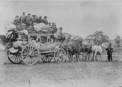 The earliest documented Chinese settler was Mak Sai Ying, who arrived in 1818, and purchased land in Parramatta. He married an English woman; Sarah Thompson, in 1823, changed his name to John Shying, and by 1829 held the licence for a Parramatta public house, the Lion. He returned to China in 1832, but was back in Sydney five years later. Some of his children became furniture makers, and descendants live in Melbourne today.[5] This story of integrating while maintaining ties with China was repeated over and over in the nineteenth century. European immigrants often found the long trip 'home' a daunting prospect, but many Chinese did not feel so distant from old connections.