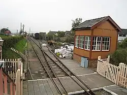 Following discussions with Network Rail, an extension of about a mile (1.5 km) to Princes Risborough main line railway station was undertaken, with a view to running into Princes Risborough station.[3] This would allow passengers to connect from Chiltern Railways services on the Chiltern Main Line. Previously, the line was reconnected at a point just yards from the head shunt at Thame Junction for special events to allow trains to run into Princes Risborough station: in October 2013, the line was reconnected for the first 3 weekends for the Railway's "Haversham & Friends" celebrations,[4] and the first through-train for 57 years, a rail tour from Aylesbury via Princes Risborough, ran on 5 October 2013.[5][6]