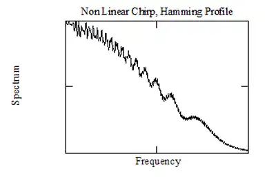 Non-linear chirps with spectral profiles of a Blackman-Harris window show ripple reduction, but can have disappointing performance due to amplitude profiles with fast rise and fall times.