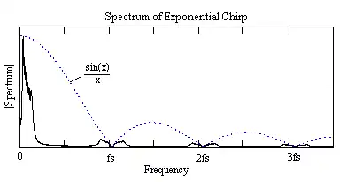 As examples, below are two plots of the spectral magnitudes of such chirps, with time-bandwidth products of 250 and 25, respectively. These chirps have reduced energy content in their outer frequency regions, but still show less than ideal performance.