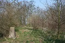 The civil parish has a total area of 1,749 acres (708 ha).[17] The terrain is predominantly flat, with an average elevation of around 50 metres. A trig point is located at SJ631567, at an elevation of 55 metres. Crowton Brook runs north–south through the civil parish and Bankside Brook forms part of the northern boundary; there are numerous scattered small meres and ponds. Several small areas of woodland are located within the civil parish. The small village of Cholmondeston (SJ628599) lies in the north of the civil parish at the junction between Winsford Road, Minshull Lane and Calveley Green Lane.[18] The area is predominantly rural, with the major land use being agricultural.[19]