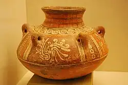 The origins of the Mixteca-Puebla stylistic tradition appeared and reflected the Gulf Coast influences. Polychrome pottery was already common by CE 1000, and also resembles Gulf Coast styles.[3]