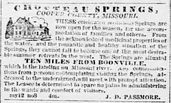 - ^ Passmore, J. D. (July 7, 1855). "Chouteau Springs, Cooper County, Missouri". Boonville Weekly Advertiser. Boonville, Cooper County, Missouri. p. 1.