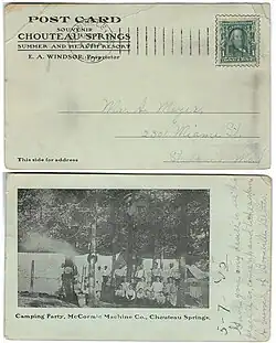 In 1900, Eugene A Windsor purchased Chouteau Springs Park Resort from James E. Young of Kansas City, Kansas.[27] Everett Spry was manager of Chouteau Springs Resort from about 1917 to 1932.[28]